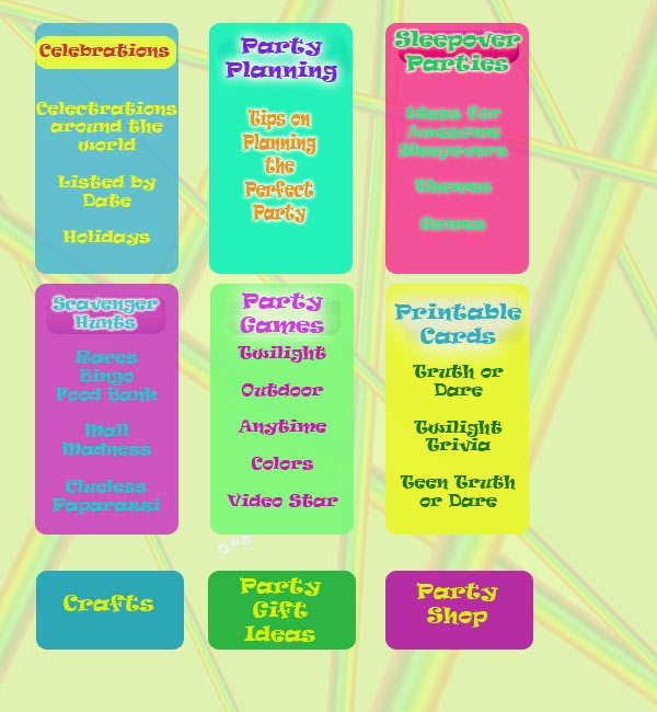 From sleepover parties to fun party games, scavenger hunts and holiday parties, have fun at your party!